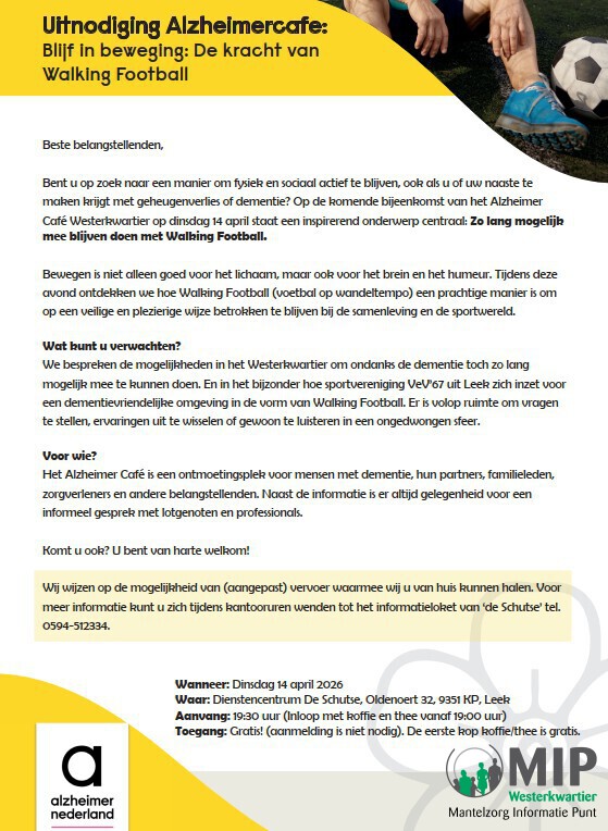 Alzheimercafe 14 april: Blijf in beweging: De kracht van Walking Football