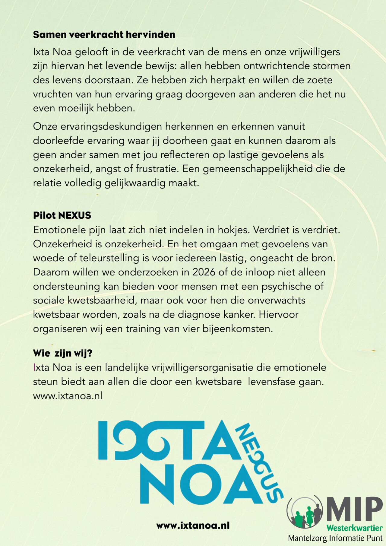 Ixtanoa biedt vanuit ervaringsdeskundigheid emotionele steun aan mensen die door een kwetsbare levensfase gaan.