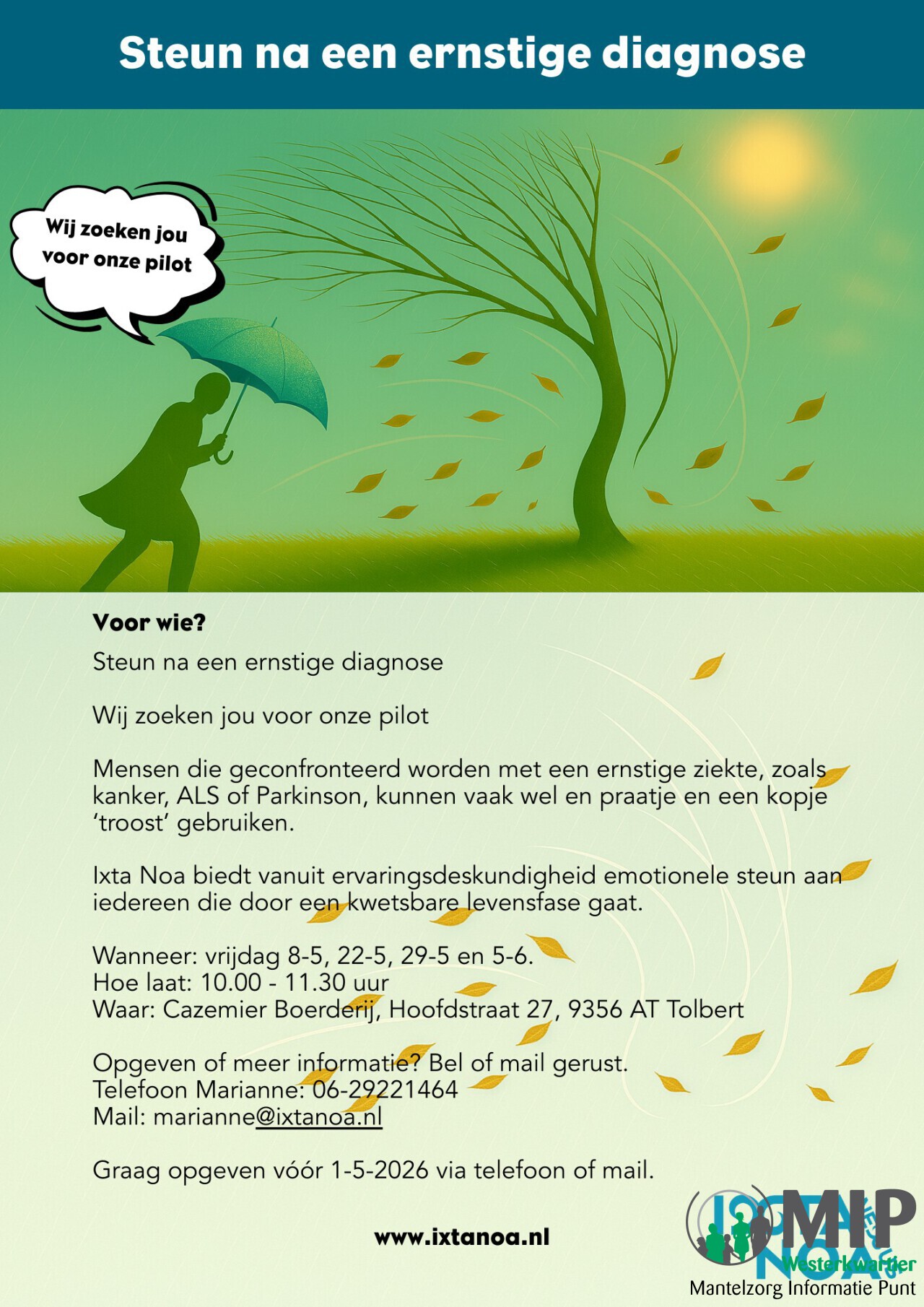 Opgeven: mail naar marianne@ixtanoa.nl